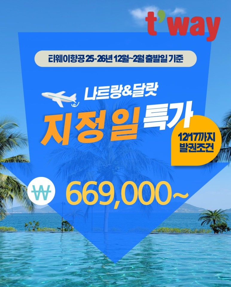 ✈ 티웨이항공 (TW) 🎁 나트랑, 달랏 선발권 특가!!! -12/17선발권조건 ✨동양의 나폴리 나트랑 ✨영원...