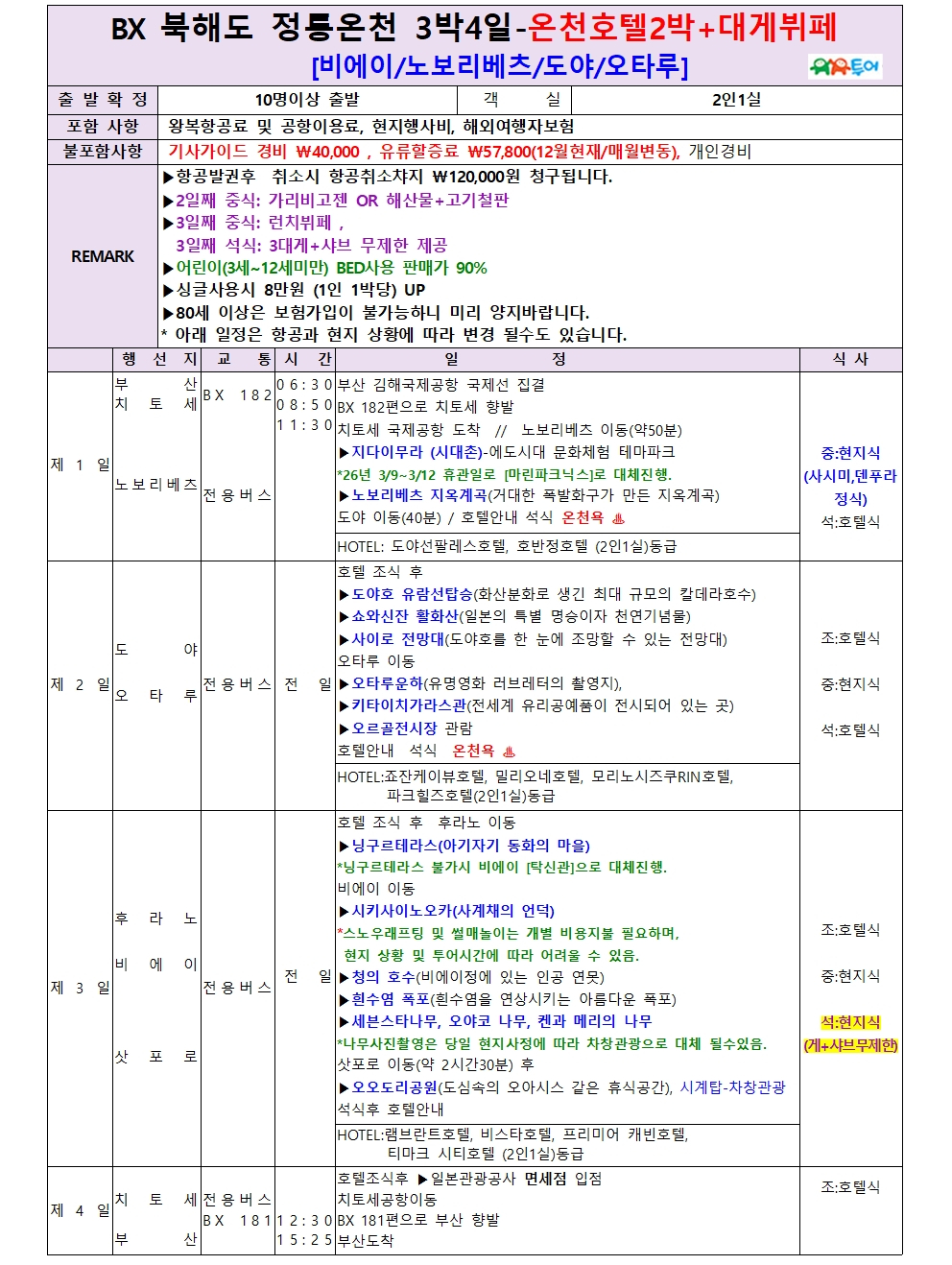 | 부산출발 북해도 비에이/소운쿄 3박4일 [온천2박+대게뷔페] BX - 유유투어 패키지 전문 여행사 (0) | 2025.12.18 |
