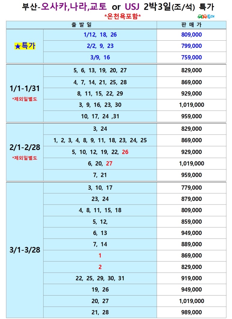 | 부산출발 오사카 3박4일 [온천호텔1박] 1월~3월 선발권특가 BX - 유유투어 패키지 전문 여행사 (0) | 2026.01.09 |