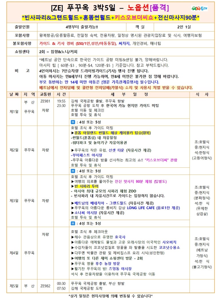 부산출발 푸꾸옥 [품격-노옵션] 1월~3월 스팟특가 3박5일 ZE - 유유투어 패키지 전문 여행사