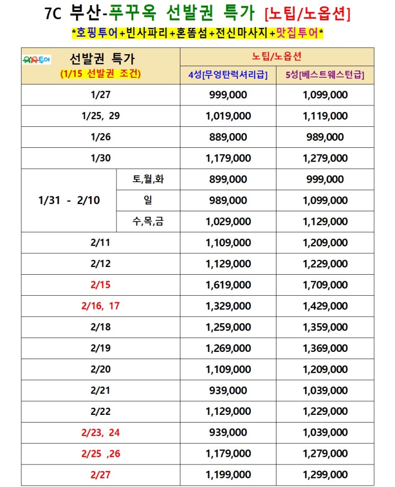 7C 1월~2월 선발권 특가
