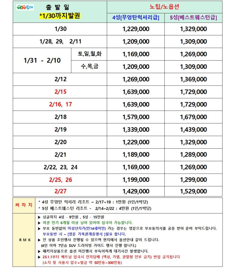 노팁 & 노옵션 (4명부터 출확) 노노팩키지