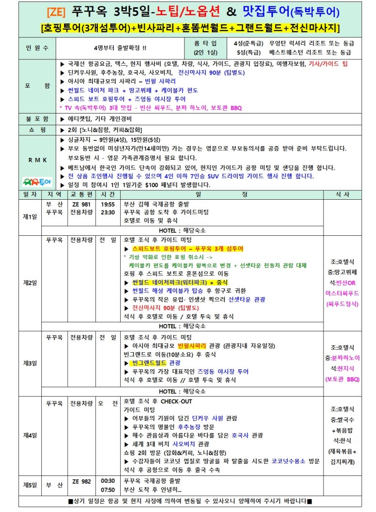 부산출발 푸꾸옥 [노팁/노옵션- 호핑+빈사파리+혼똠+맛집투어] 2월~3월 특가 ZE - 유유투어 패키지