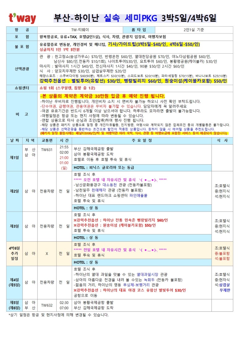 | 부산출발 하이난 전세기 [5성급 세미패키지] 1월~2월 요금인하 TW - 유유투어 패키지 전문 여행사 (0) | 2026.01.13 |