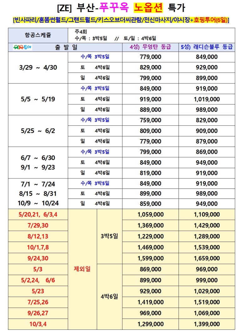 📢 주4회 운항 수/목 3박5일 , 토/일 4박6일
