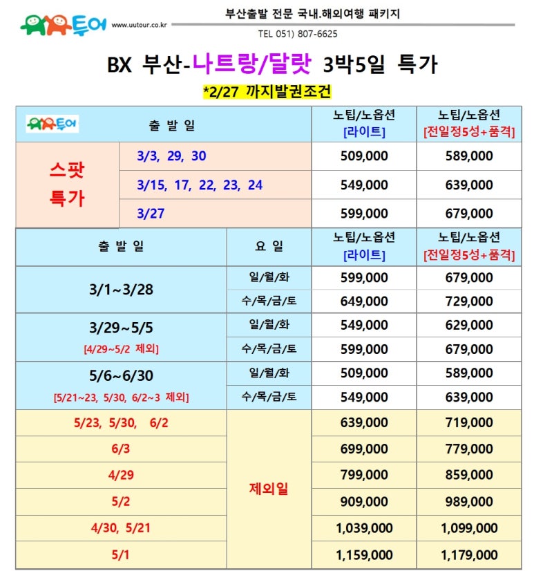 | 부산출발 나트랑,달랏 [노팁/노옵션] 3월~5월 스팟 특가 BX - 유유투어 패키지 전문 여행사 (0) | 2026.03.06 |