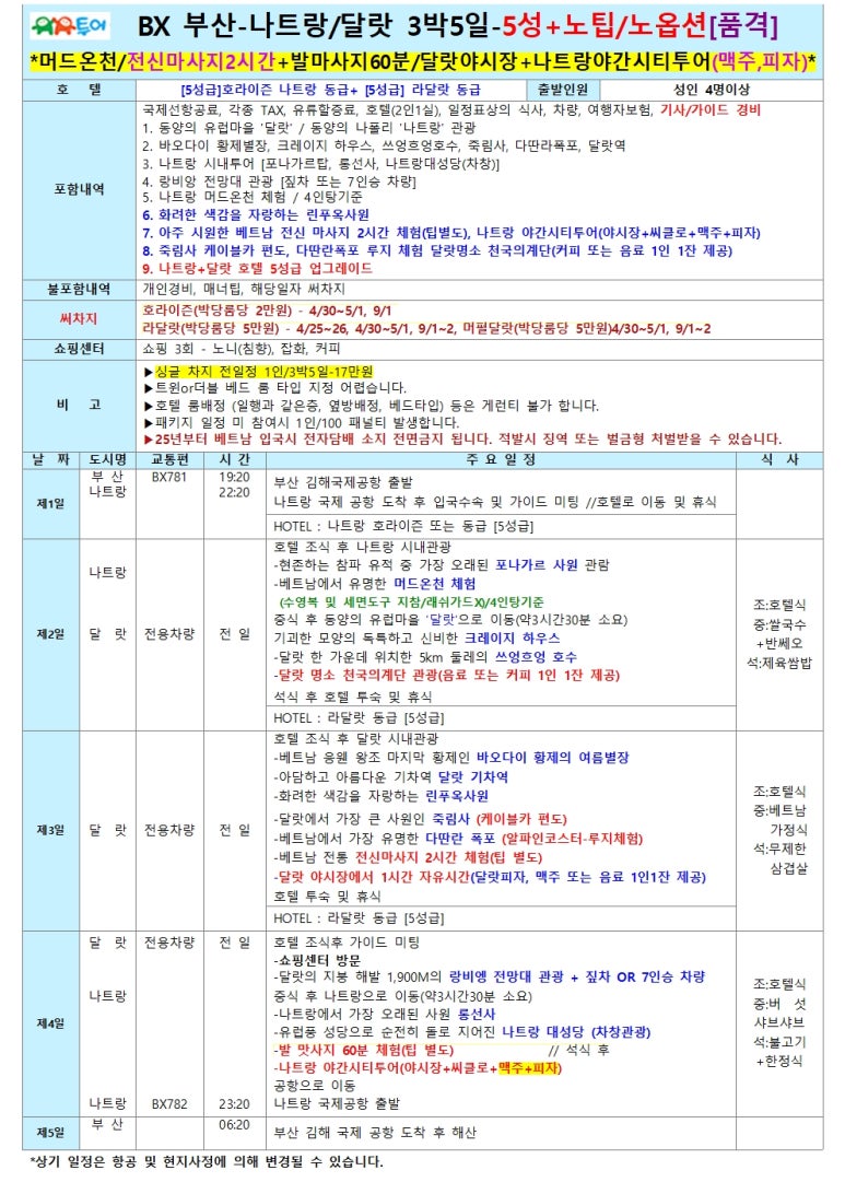 | 부산출발 나트랑, 달랏 [노팁/노옵션] 1월~2월 스팟특가 BX - 유유투어 패키지 전문 여행사 (0) | 2026.01.19 |