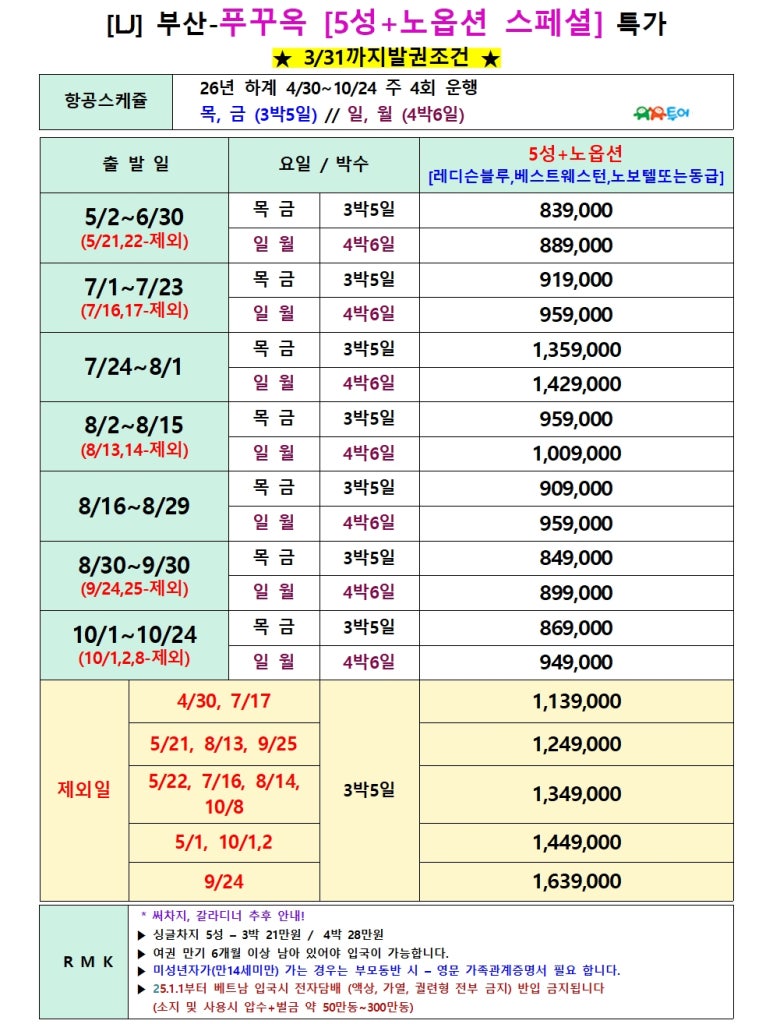 | 부산출발 푸꾸옥 [품격-노옵션] 3/29~10월 특가 ZE - 유유투어 패키지 전문 여행사 (0) | 2026.01.29 |