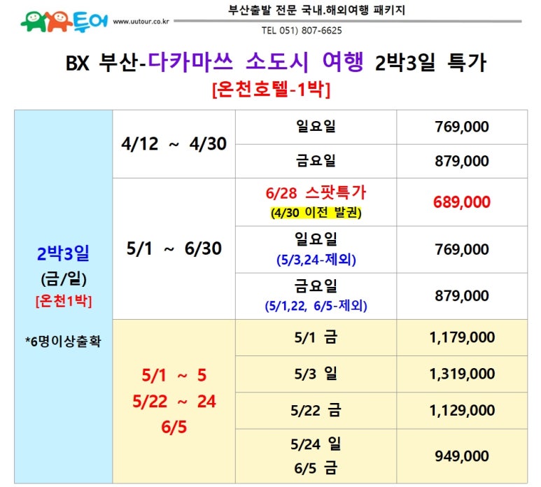 | 부산출발 타카마츠 소도시여행 4월~6월 선발권 특가 2박3일/3박4일 BX - 유유투어 패키지 전문 여행사 (0) | 2026.02.09 |